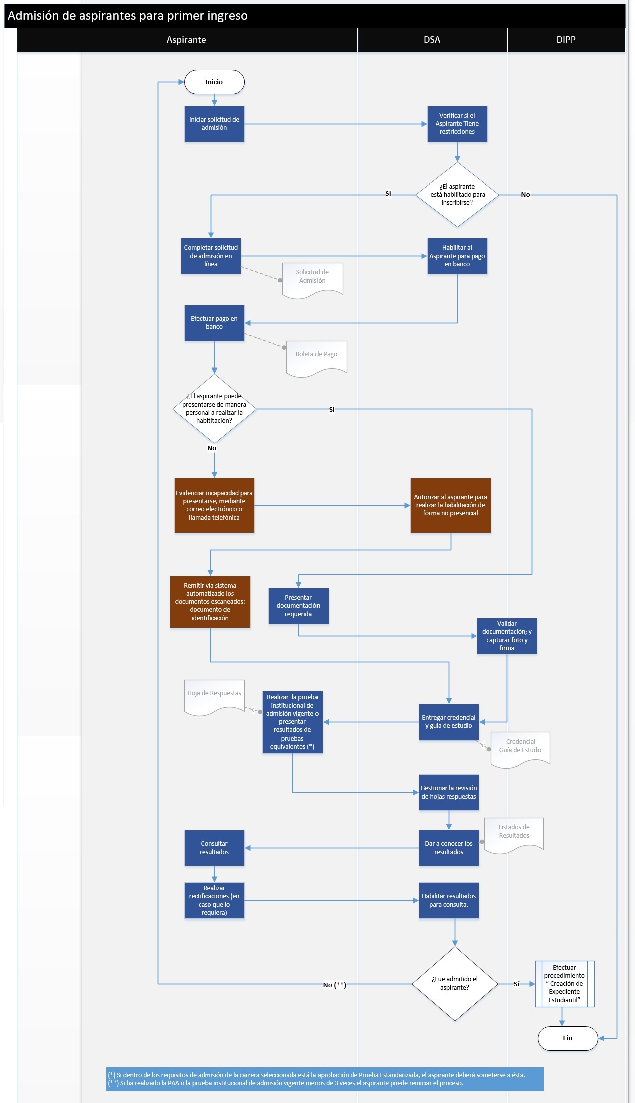 Procedimiento de admisión de aspirantes para primer ingreso