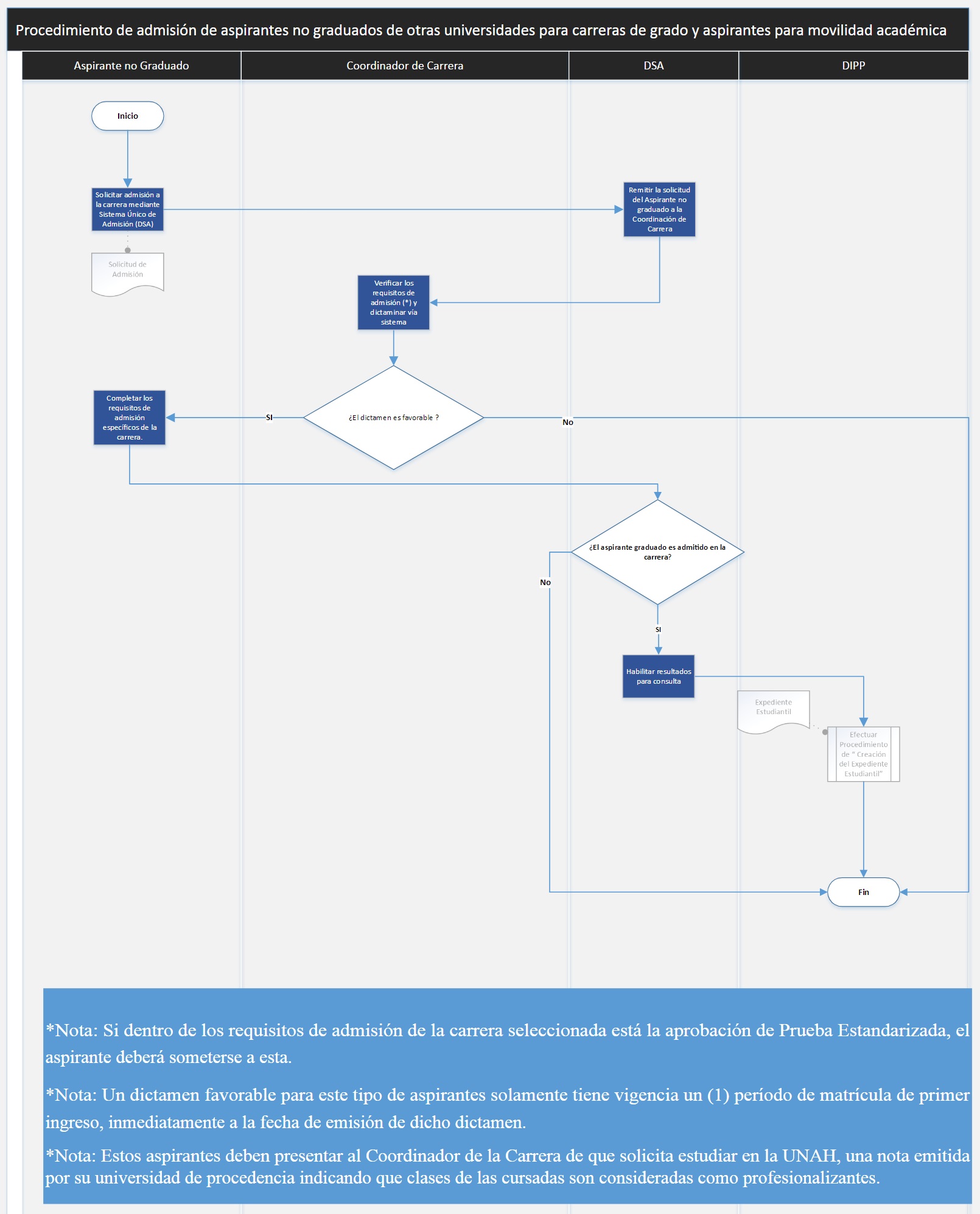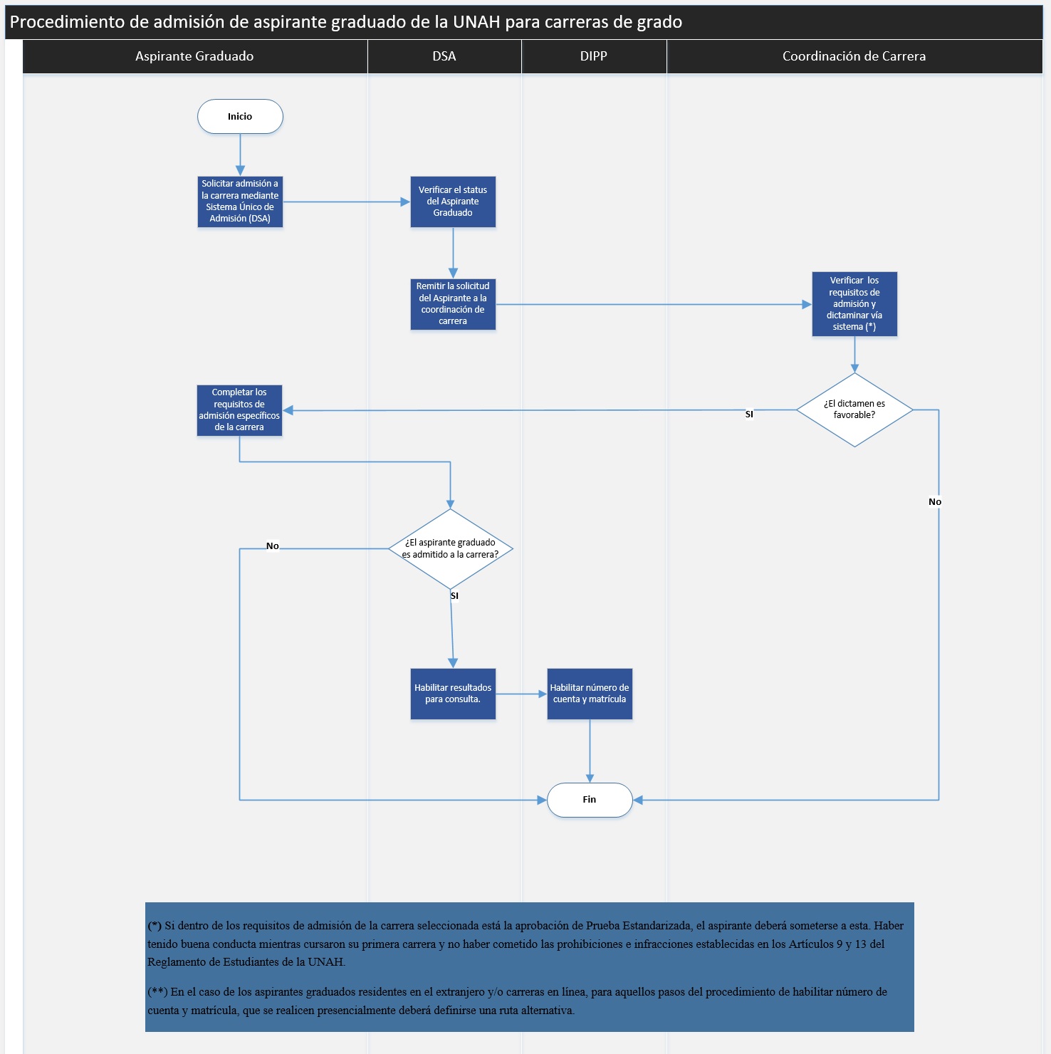 Procedimiento de admisión de aspirante graduado de la UNAH para carreras de grado